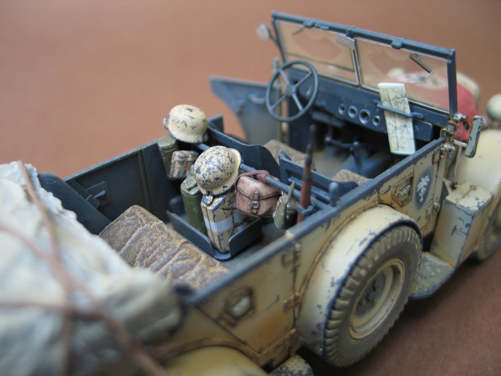 Maketa je dopunjena sa nešto malo napravljenih detalja ... retrovizor, brisači, instrumenti kontrolne table, lanac. Unutrašnjost je obogaćena sa delovima iz kutije sa viškom delova a zastava i pokrivka cargo dela od papira natopljenog vodom u belim lepkom. Palma , zaštitni znak DAK farbana je uz pomoć PE šablona.
